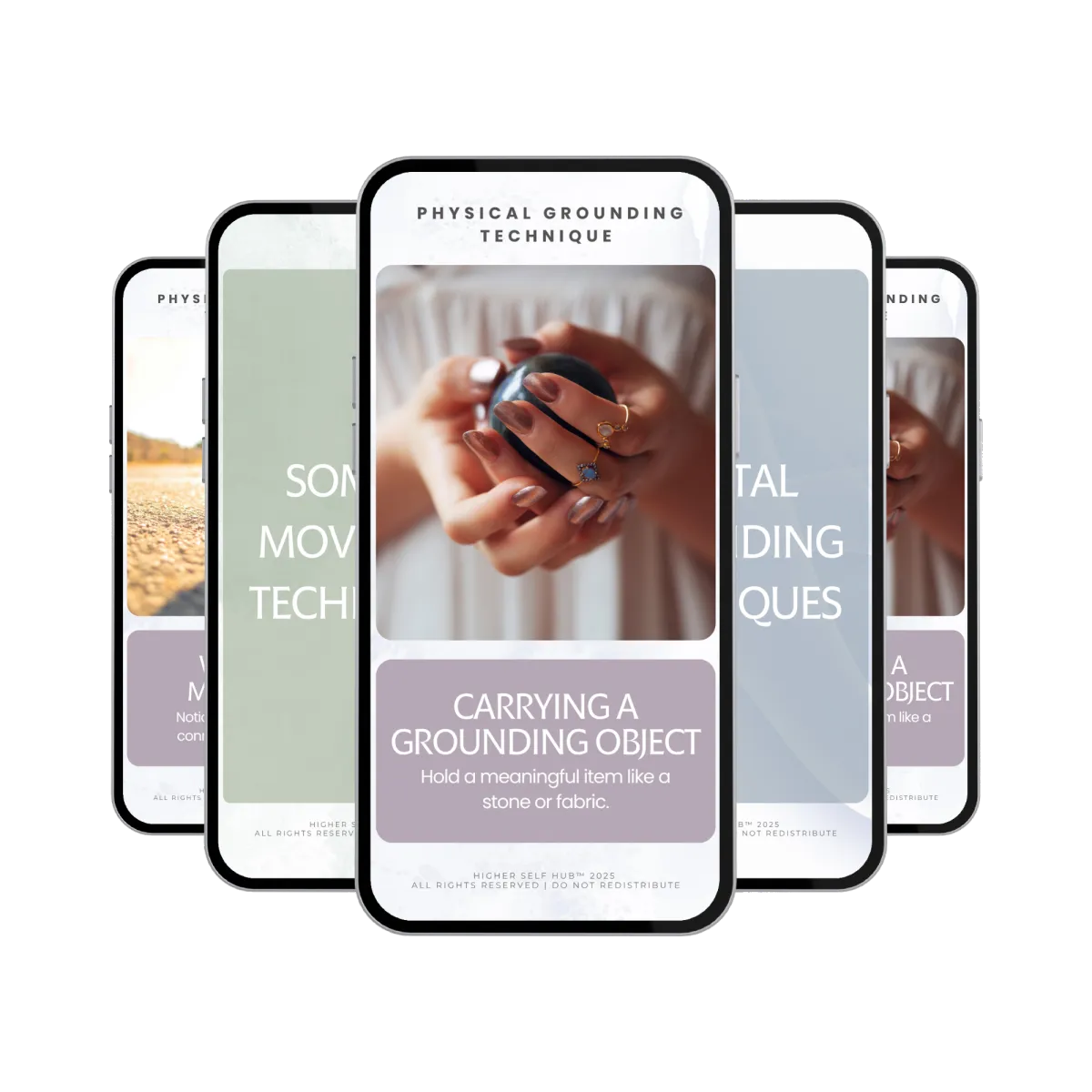 Turn your phone into an instant regulation coach with 21 days of body-based techniques. Beautiful, discreet reminders of specific somatic grounding practices always at your fingertips. When dysregulation hits during a meeting, in line at the store, or at 2 AM, your rescue is just a glance away.